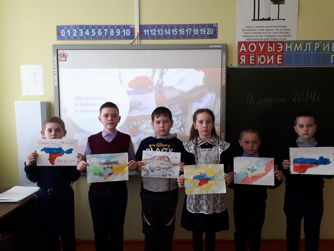 В школе проходит выставка рисунков «Крымская весна». Главной темой выставки является празднование восьмой годовщины присоединения республики Крым и г. Севастополь к России. На выставке представлены работы обучающихся 1-6 классов. В работах учеников отражается эмоциональное отношение к миру, к событиям, которые происходят в нашей стране.