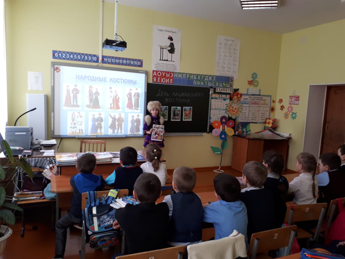 В МОБУ СОШ д.Уразаево прошли мероприятия, посвященные Дню национального костюма. Целью данного мероприятия является сохранение и развитие национальной культуры народов, проживающих в нашей республике. Учителя-предметники, классные руководители во время уроков, занятий, классных часов познакомили с особенностями национальных костюмов. На уроках учащиеся рассказывали о национальных костюмах разных народов нашей Родины, об их особенностях. Слушали танцевальные мелодии, песни и угадывали, к какому народу они относятся. В честь праздника учащиеся участвовали в флешмобе «Учусь в национальном костюме», «Национальный костюм — наследие моего народа», танцевальном флешмобе «Я в национальном костюме» и конкурсе рисунков “Мой национальный костюм”.