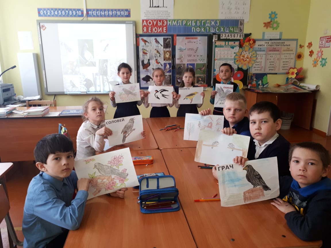 Птицы – наши друзья. Птицы наши верные помощники, защитники лесов, полей, садов и огородов. Каждый год они приносят нам на крыльях весну. С целью привлечения детей к охране птиц, привития любви, воспитание экологической культуры 16 апреля в начальных классах была проведена экологическая акция «День птиц». Мероприятие для учащихся 2,4 классов прошло в форме конкурсной игры «В мире птиц». На каждой станции были подготовлены конкурсы, викторины, познавательные задания. Ребята узнали много нового и интересного о птицах, как произошли названия тех или иных птиц, раскрыли секрет: в каком домике птицам будет уютно жить, чем кормить, какую пользу приносят птицы. Учащиеся 1,3 классов приняли участие в выставке рисунков и покормили птиц в школьном дворе. Экология России начинается за школьной партой. Ведь одна из воспитательных задач современного образования – формирование экологической культуры! Птицы приносят огромную пользу и радость всем, трудно и скучно было бы жить на свете без птиц. Берегите птиц! Птицы наши верные друзья!