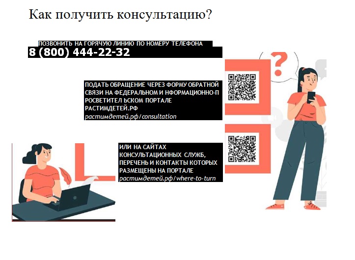 - позвонить на телефон единой « горячей линии» (8 800 444 22 32) или на телефон консультационной службы конкретной организации