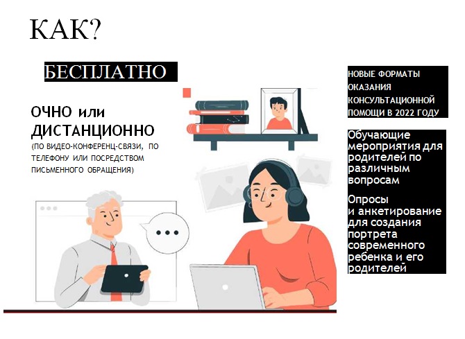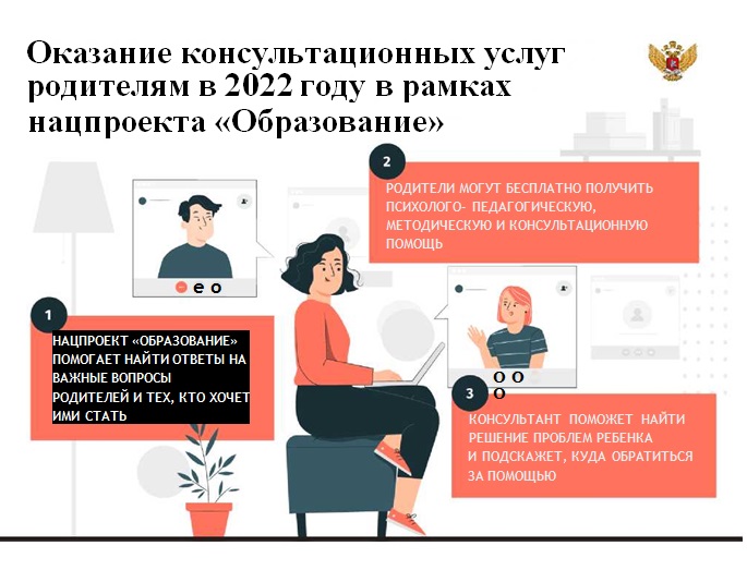 Нацпроект « Образование» помогает найти ответы на важные вопросы родителей и тех, кто хочет ими стать. Вы можете бесплатно получить психолого-педагогическую, методическую и консультационную помощь. Консультант поможет найти решение проблем ребенка и подскажет, куда обратиться за помощью.