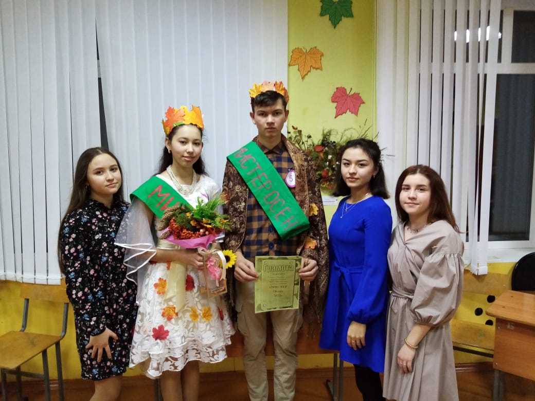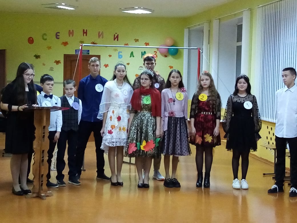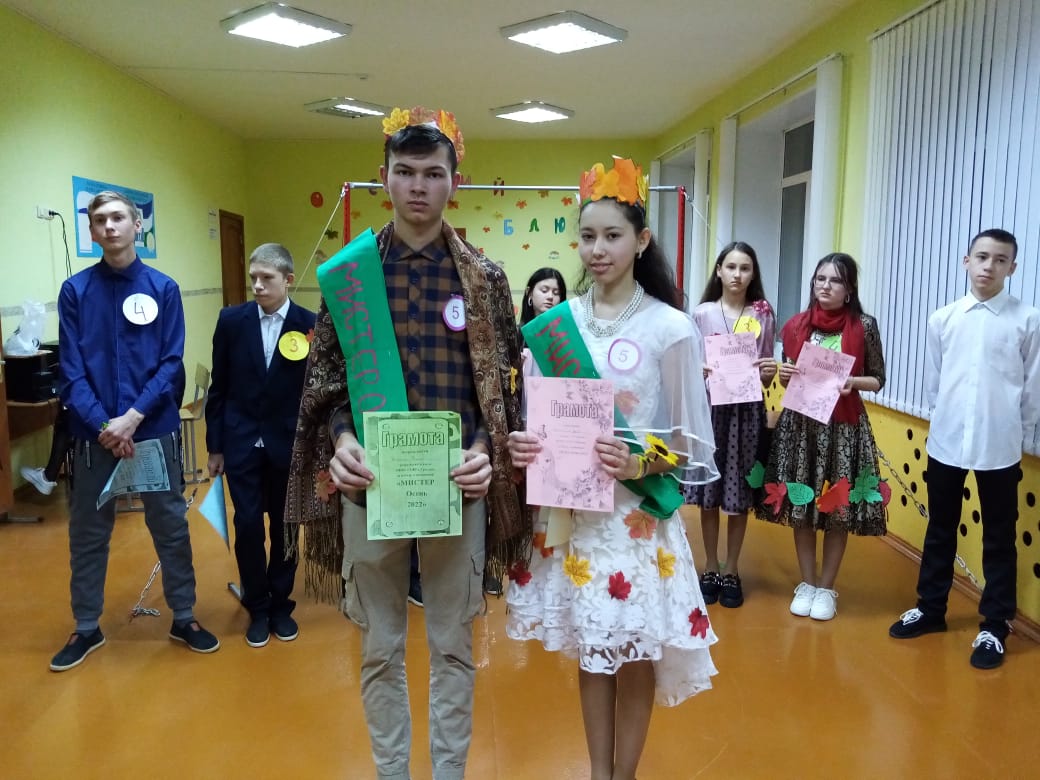 Организаторами осеннего праздника был 9-й класс, они составили сценарий и заранее дали задания классам. Основная часть праздника — выбор Мистера и Мисс Осень — состояла из нескольких этапов: визитная карточка, разминка, домашнее задание, собери пословицу, осеннее дефиле и т.д. В конкурсах участники раскрылись с самых неожиданных сторон: было много остроумных, оригинальных ответов.. На протяжении всего вечера в фойе школы буйствовали краски осени в золотом, желтом, багряном и других цветах осени. Конкурсное мероприятие прошло ярко, энергично и эмоционально. Было видно, что все конкурсанты проделали большую подготовку в оформлении своих осенних нарядов, подготовке визитки и творческих номеров. Конкурсная программа была увлекательная и разнообразная. Ребята пели песни, представляли осенние поделки, сделанные к конкурсу, а самым запоминающимся был конкурс под названием «Осеннее дефиле». Наряды, в которых выступали юные модницы, были по-осеннему красочными и необычными.