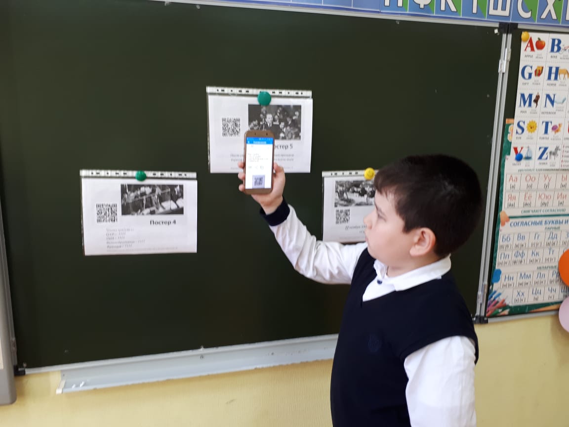 Для этого нужно было найти размещенные в школе постеры, содержащие разрозненные информационные фрагменты с QR-кодами, получить по QR-кодам дополнительную информацию, соединить информационные блоки в логическую последовательность и в результате получить полную информацию о событии. Ребята выполняли задания с огромным интересом. Для некоторых из них было необычным получать информацию с помощью телефона по QR-кодам.