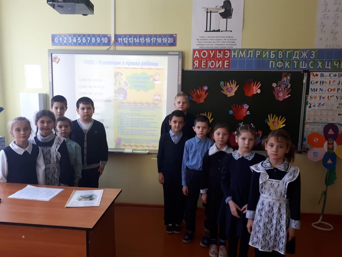 18 ноября в школе прошли классные часы, посвященные всероссийскому Дню правовой помощи детям: «Права детей» (1-4 классы), «Права подростков» (5-7 классы), «Имею право, но обязан» (8-11 классы). Ребята познакомились с основными правами и обязанностями – правом на жизнь и имя, образование и отдых, медицинскую помощь и правильное питание, на любовь и заботу со стороны взрослых. Ребята задавали вопросы и высказывали свое мнение. Затрагивались темы правового консультирования детей по вопросам их собственных прав, обсуждали жизненные ситуации, в которые попадают ребята.Учащиеся 1-4 классов просмотрели видеоролики для детей, в которых отражены права ребенка, на примере главных героев мультфильмов.