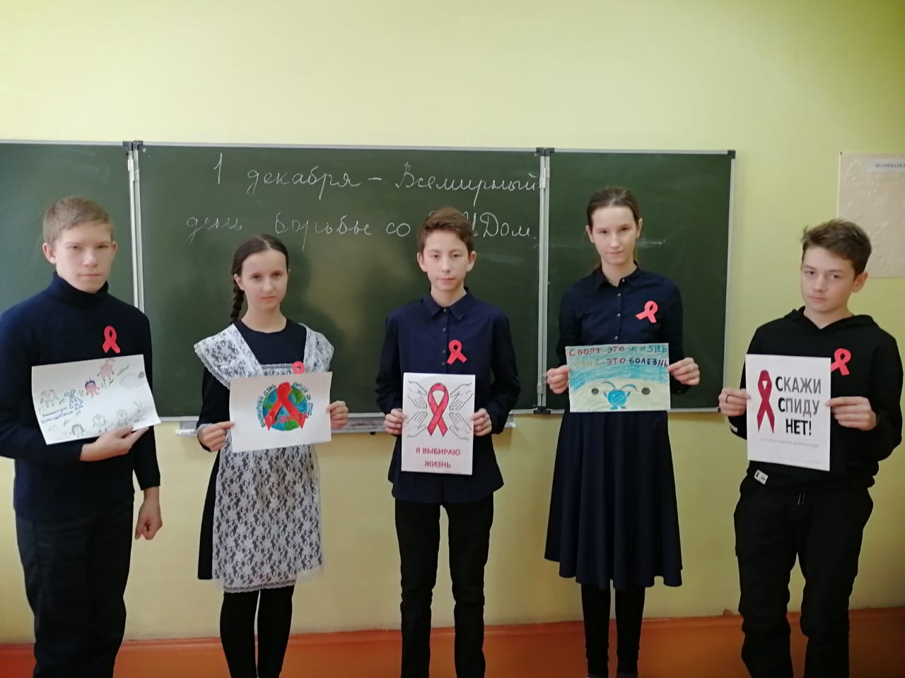 В целях профилактики ВИЧ-инфекции в образовательной среде и информирования детей и молодежи по действенным подходам и эффективных практиках противодействия распространению ВИЧ-инфекции: путях передачи, механизмах инфицирования, социально-гуманитарных последствиях распространения, а также современных способах профилактики, лечения и тематических информационных ресурсах, ориентированных на формирование у детей и молодежи стойких поведенческих навыков, способствующих сохранению здоровья и уменьшению риска ВИЧ-инфицирования в школе с 28 ноября по 2 декабря 2022г. проводилась Всероссийская Акция «Стоп ВИЧ/СПИД», приуроченная к Всемирному дню борьбы со СПИДом.В рамках проведения акции был проведен конкурс рисунков среди учащихся 5-8 классов на тему: «Стоп ВИЧ – инфекция и СПИД». Классными часами были охвачены учащиеся 1-11 классов. В ходе проведения классных часов на тему «В будущее без СПИДА» в 5-11 классах были рассмотрены с учащимися вопросы по широкому спектру проблематики ВИЧ – инфекции и СПИДА, затронуты способы формирования ответственности по отношению к собственному здоровью, обсуждалось развитие поведенческих навыков, способствующих уменьшению риска ВИЧ – инфекции среди молодежи. Классные часы в 1-4 классах были проведены с элементами спортивных соревнований на тему «Мы здоровые ребята».. В школьной библиотеке была размещена книжная выставка «Скажите здоровью – ДА!».Акция «Мы выбираем жизнь!» закончилась тем, что каждый обучающийся смог поучаствовать в заключительной Акции «Красная ленточка». Красная лента - это символ солидарности с теми, кого эпидемия СПИДа затронула лично: с людьми, живущими с ВИЧ-инфекцией и СПИДом, с их близкими, родными и друзьями. Из маленьких красных ленточек обучающиеся школы сложили одну большую, как символ понимания проблемы СПИДа