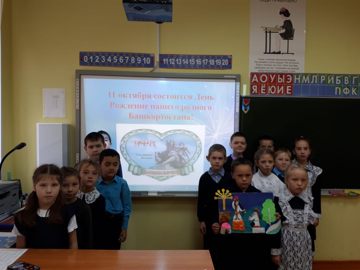 В рамках празднования Дня Республики по определенному плану в нашей школе были проведены различные мероприятия. 08 октября 2021 года ко Дню празднования в школе состоялась торжественная линейка «Башкортостан - мой край родной», а также были организованы викторины «Люби и знай свой край родной», «Яркие страницы истории становления Республики Башкортостан», в которой приняли участие любознательные девочки и мальчики. Классными руководителями на тематических классных часах проведены беседы с ребятами на тему: «День суверенитета РБ», «Символы Республики», «Мой край родной». На уроках дети выразительно читали стихотворения башкирских поэтов о Башкортостане, пели песню на башкирском языке. Также они знакомили с историей провозглашения Декларации, с Государственными символиками РБ. Они узнали много интересного и нового о нашей республике. . Библиотекарь школы Салимгареев Н.А. организовал выставку «Мой край – Башкортостан». Для учащихся начальных классов проводили конкурс чтецов