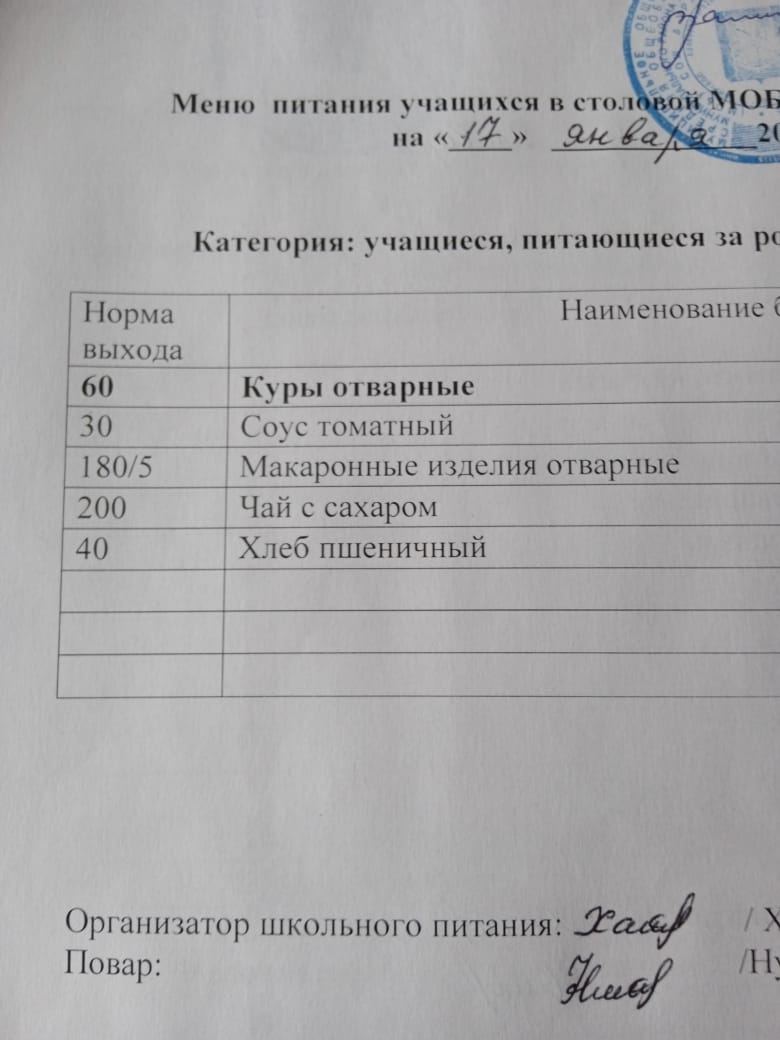 Контрольное блюдо