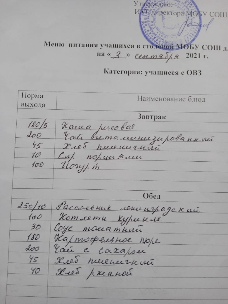 (Меню ОВЗ)