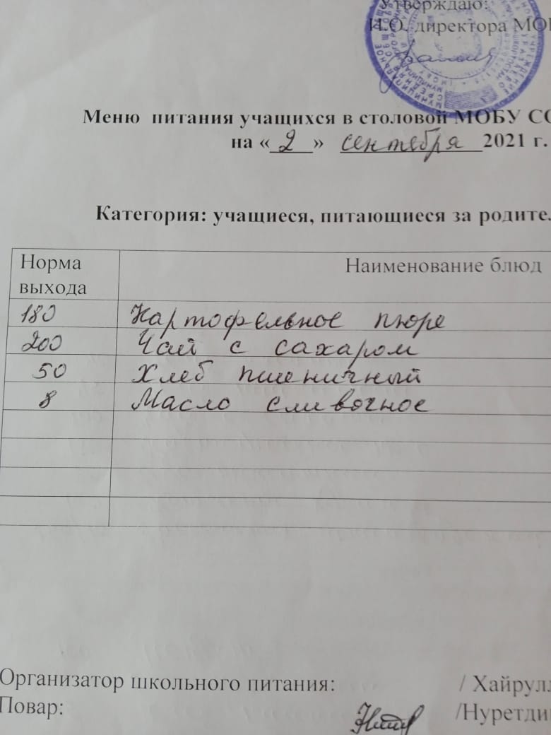 Стоимость школьного питания
